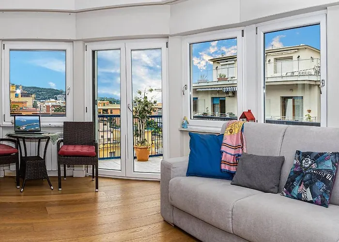 A 95 m²-es Maya Penthouse - Sorrento Center apartman körülbelül egy 5 perces sétára található a Correale di Terranova Múzeumtól és 60 km-re a Napoly nemzekozi repülőtértől. A teraszt biztosító 2 hálószobás apartman a város központjában található.